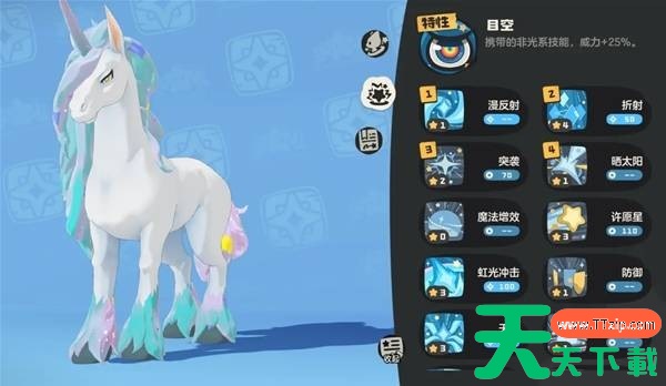 最好额外学习一个草系技能来处理玩独角兽的同行,所以速度很重要,手法是首领进化之后用折射快速叠增益,或者抢先用草系大招秒掉同行,如果能做到对方会很破防,突袭用来处理翼王这种喜欢buff起手的精灵,能一脚踹死最好。