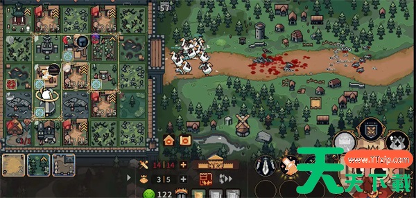 前期可以卖火枪手,等火枪手死掉了,就卖城墙血用农民偷屁股发育,求稳可以先放一个农民小屋。全速冲击研究实验室,需要的材料要50金币+50木头,献祭奖励可以优先考虑金币,前期真的很缺。