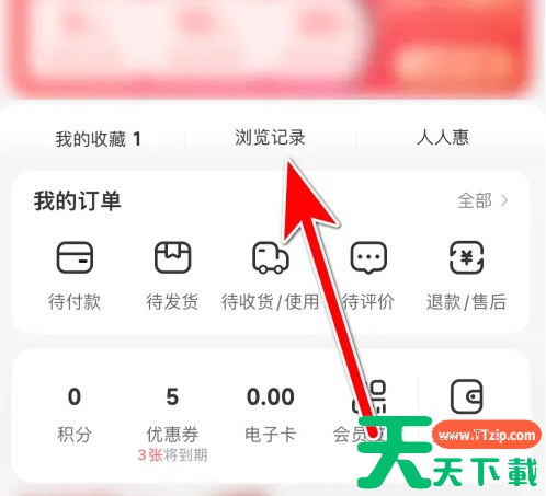 第一步:打开i百联的首页,选择【我的】。 第二步:点击【浏览记录】选项。 第三步:选择【清空】。 第四步:点击【确定】选项,即可清空浏览足迹。 @天天资源网TTzip 除特别注明外,本站所有文章均为 天天下载 原创,转载请注明出处来自 https://www.ttzip.com/247845.html