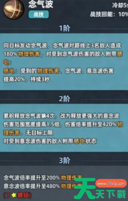 该技能为直线型攻击,对路径上最多3名敌人造成180%物理伤害,并在命中目标时施加“感电”状态。该状态本身不造成伤害,但至关重要:当处于感电状态的目标再次被“念气波”或“蓄念波”击中时,将额外承受20%伤害,持续3秒。