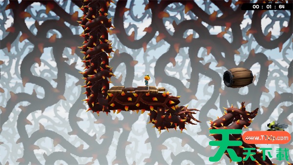 在关卡末尾,制作组恶趣味地设计了让南瓜杰克直接冲向尖刺的木桶,这里要让南瓜杰克在空中跳跃一下,调整落地位置才能通关。