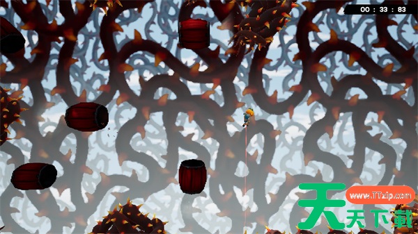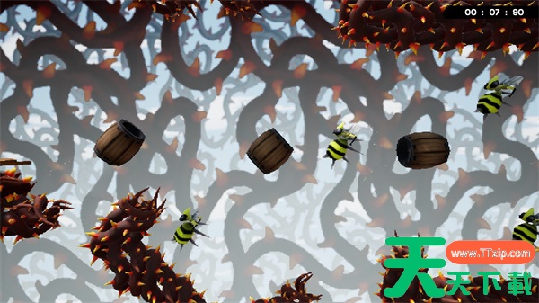 地图上会有很多木桶,操控南瓜杰克钻进木桶里,再被木桶发射出去进入下一个木桶。木桶的发射角度和力度都不需要自己手动调整,只需要寻找发射时机就好。地图上的尖刺和蜜蜂碰到了就嗝屁,但只要有充足的耐心就能轻松通过这关。