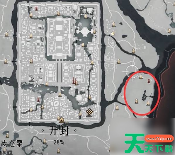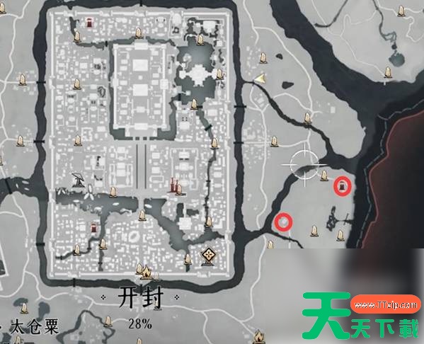 郑鄂的任务后续,聆杏村在开封城东面,在下图位置找到白色杏花树下的屋子,把手札放进屋子里,并发现这里就是翟煦的家。