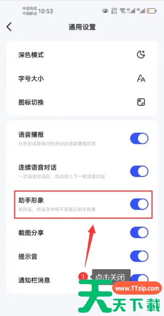 打开文心一言app,点击设置功能【截图中圈红的部分】 点击通用设置【截图中圈红的部分】 点击关闭助手形象功能开关【截图中圈红的部分】 关闭后,系统会自动保存设置,之后退出设置功能就可以了【截图中圈红的部分】 @天天资源网TTzip 除特别注明外,本站所有文章均为 天天下载 原创,转载请注明出处来自 https://www.ttzip.com/248048.html