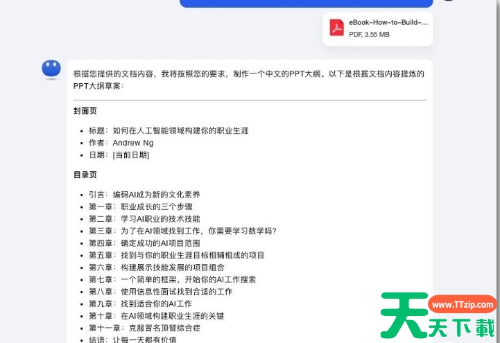 上传文档:直接上传 Word、PDF 等现成文件,搭配相关要求,系统会依据文档内容生成 PPT。