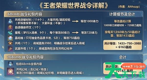王者荣耀世界的商城中有很多氪金要素,还有战令,那么战令的性价比如何呢?请看下面由为大家带来的王者荣耀世界商城氪金物品介绍,一起来看看吧。 王者荣耀世界战令性价比如何 以上就是天天下载TTzip为大家带来的王者荣耀世界战令性价比如何的内容解读了,大家都了解了吗?还想要了解更多的内容那就请继续关注天天下载(ttzip.com)吧。 @天天软件站Ttzip 除特别注明外,本站所有文章均为 天天下载 原创,转载请注明出处来自 https://www.ttzip.com/248162.html