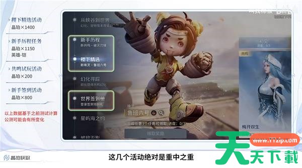 新手历程、稷下精选、世界签到册,这几个活动是重中之重。