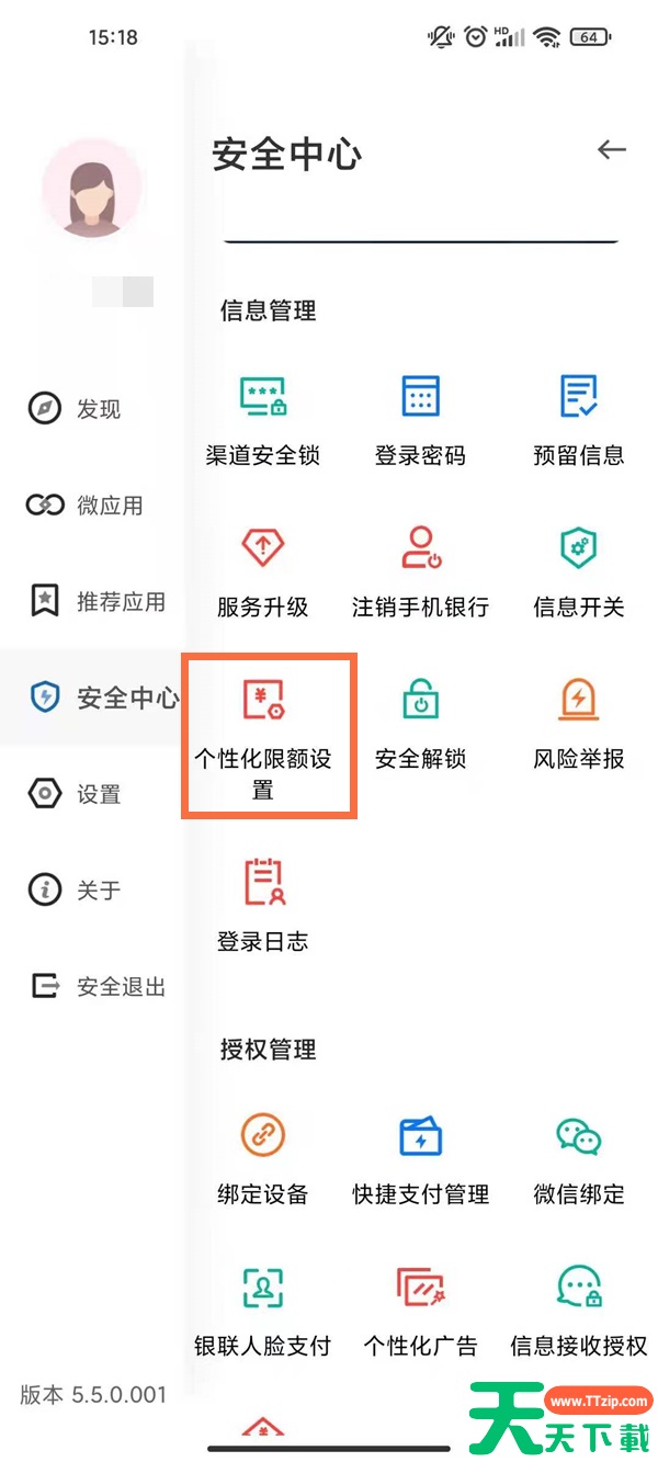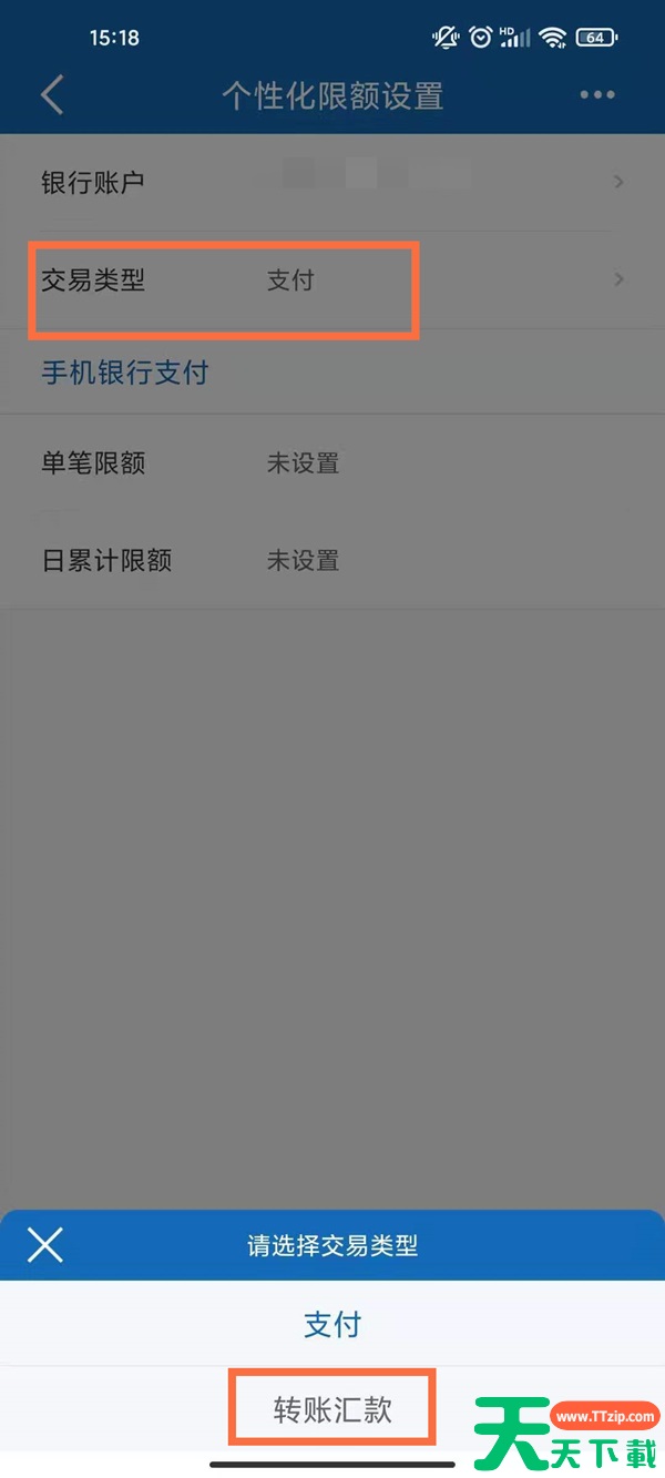 1、打开建设银行app,点击左上角三根横线,在安全中心点击个性化限额设置。 2、点击交易类型,选择转账汇款。 3、设置限额,点击修改即可。 @天天资源网TTzip 除特别注明外,本站所有文章均为 天天下载 原创,转载请注明出处来自 https://www.ttzip.com/248280.html