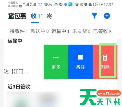 打开菜鸟,点击包裹后面的三个点。 接下来,点击【删除】。 最后,点击【确认删除】即可。 @天天资源网TTzip 除特别注明外,本站所有文章均为 天天下载 原创,转载请注明出处来自 https://www.ttzip.com/248291.html