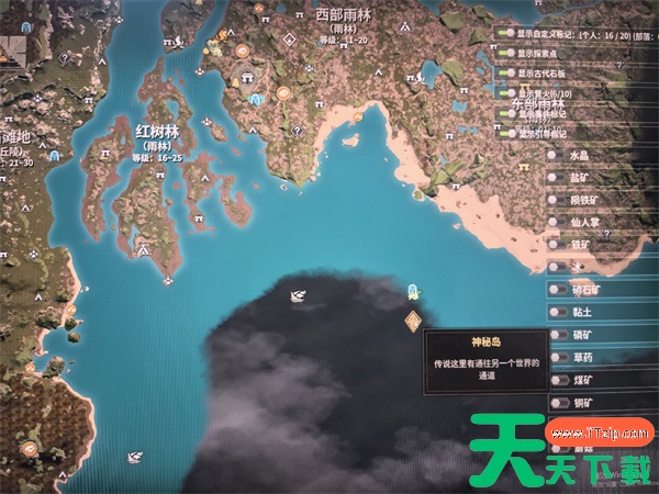 在地图右下角黑色区域,黄金传说面具以东的海域有一座神秘岛,还有个小传送门。