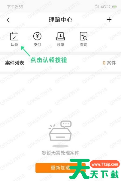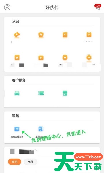 2、登录后,在主界面找到理赔中心功能按键,点击进入。