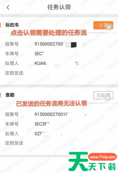 5、点击案件后,进入任务流认领界面,对查勘或定损任务流进行认领操作,如图所示。