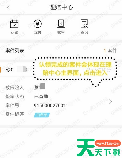 6、认领完成后,在理赔中心主界面会展现所认领的案件,点击案件,即可进入案件初始信息页面。