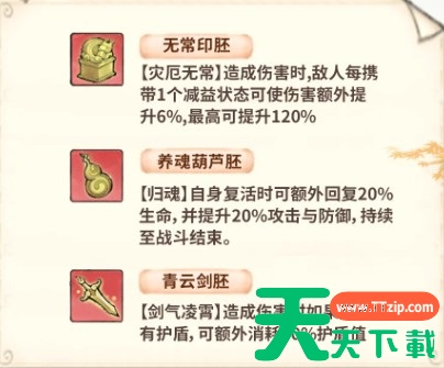 【归魂】自身复活时可额外回复20%生命,并提升20%攻击与防御,持续至战斗结束。