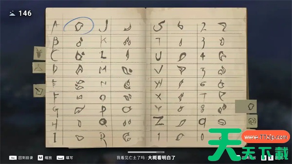 找一张符号对照表对应填写就行,需要注意的是隐藏符号需要先把其他全填写正确后在最后一关(山顶)会触发隐藏石碑,跟该石碑写即完成全符号填写。