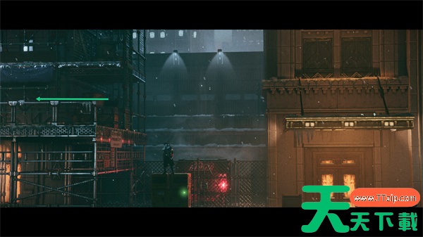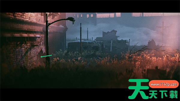 结束吊车的无人机追逐战,再往前走一段路,跳下建筑物缺口后,向左走钻入小洞。