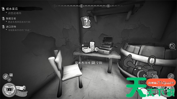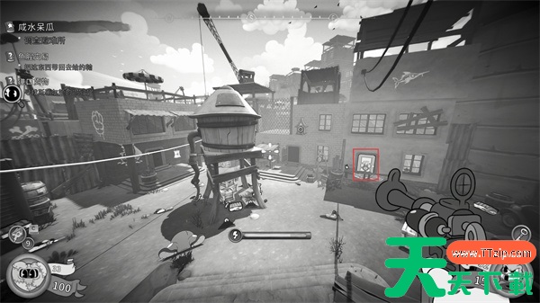 2、在 [砰通湾] 一路探索,来到中央有水塔的区域,打开上锁的门,最里面房间桌上。