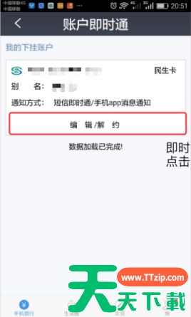 3、在“账户即时通”界面,选择“编辑/解约”,具体如下图