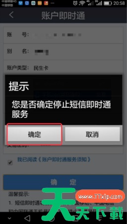 6、接下提示“您是否停止短信即时通服务”,“确定”即可,随后弹出提示“您的账户即时通服务维护成功”,说明停用成功,直接确定即可,具体如下图