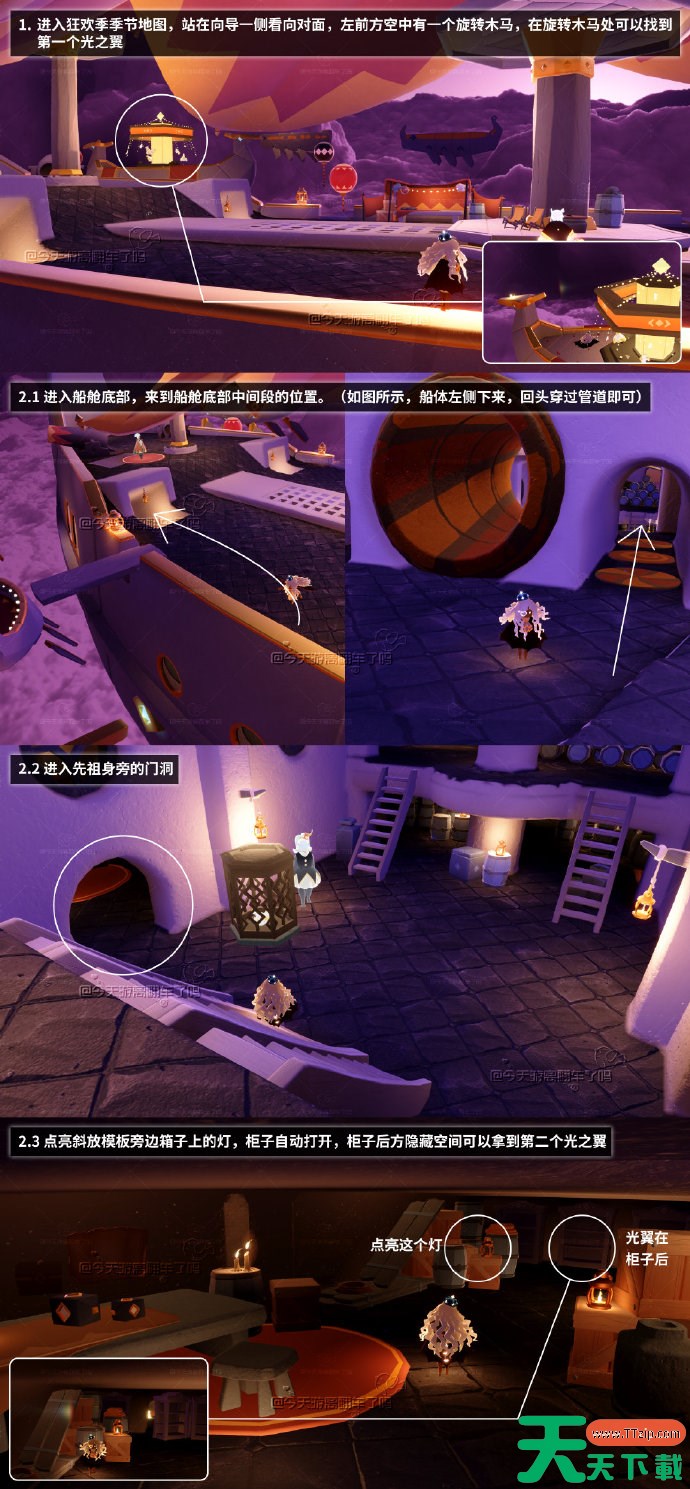 光遇狂欢季已经正式开始,大家可以寻找先祖然后兑换先祖的物品了,那么大家知道这几位先祖都在哪里吗?相信大家都想了解,那么下面快跟随天天下载TTzip一起来看看光遇狂欢季先祖位置吧。 光遇狂欢季先祖在哪 全部先祖位置 以上就是天天下载(ttzip.com)为大家带来的光遇狂欢季先祖在哪解答,大家都了解了吗?还想要了解更多的内容那就请继续关注天天下载(ttzip.com)吧。 @天天软件站Ttzip 除特别注明外,本站所有文章均为 天天下载 原创,转载请注明出处来自 https://www.ttzip.com/248553.html
