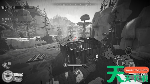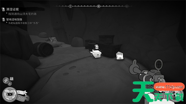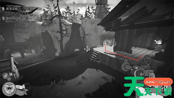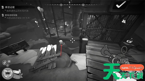 2、在 [远方湿地] ,穿过矿坑来到木屋,和 老私酪贩子 对话。