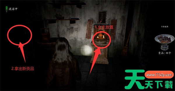 女主再把供奉的贡品放在桌上(男主不要拿),男主那边佛像门才会打开。让男主那边放置2个贡品对上佛像。等到男主全都放好之后,女主再拿回桌上的贡品放回佛像!