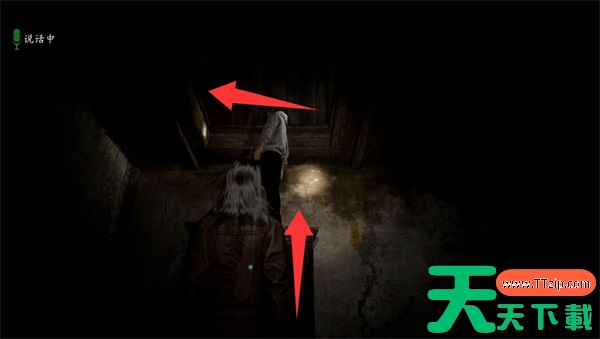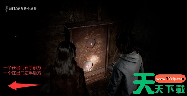 小女孩跑走之后,男主爬上柜子,女主通过缝隙打灯配合!