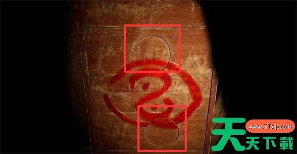 此时,一个人去柜子后方观测,让另一个旋转机关,让这个图案对齐,拿到下方大门钥匙!