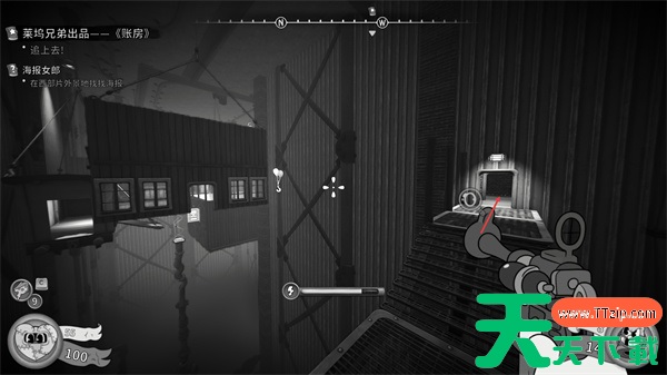 2、在 [西部片外景地] 一路探索,经过空中布景,遇到 龙套 ,拿走对面墙壁上的海报。