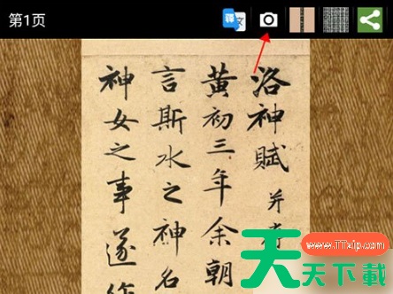 1、在底部菜单栏找到整页选项并进入,然后在软件的右上角找到一个相机图标。