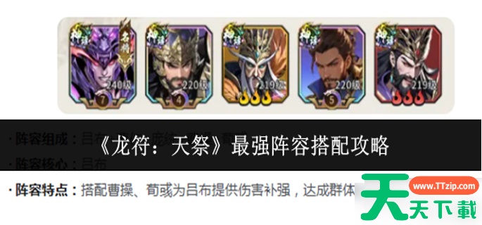 初入游戏,面对龙符天祭最强阵容怎么搭配的疑问,新人无需过度纠结。关键在于结合自身资源,集中培养核心武将。以下这份龙符天祭最强阵容搭配攻略将深度解析主流体系,助你快速构建兼具输出与承伤的实战队伍。