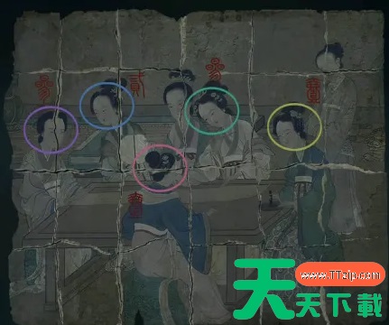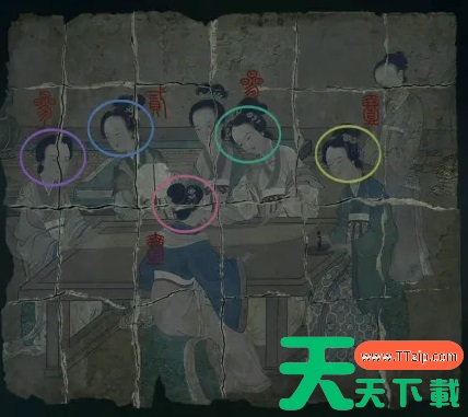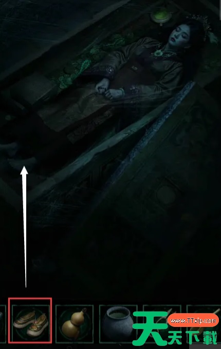 6、女尸脚下有一个箱子,根据第一个棺内小孩脖子上的“儿孙满堂”打开箱子获得一张女子画像,使用酒浇在画的右下角,获得“四四二十五”的信息。