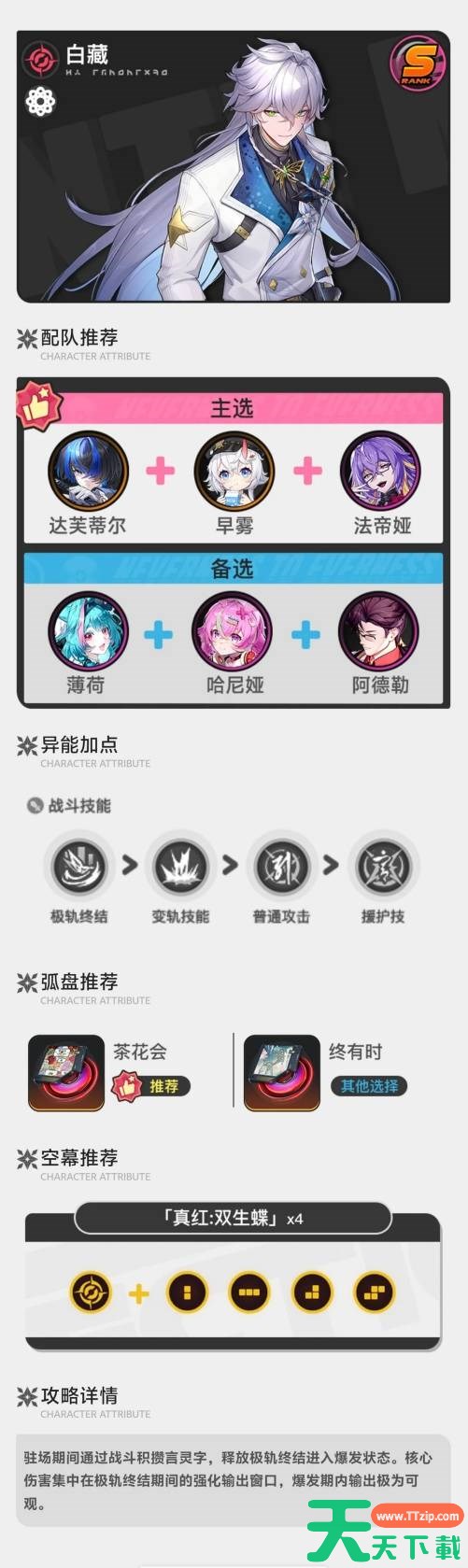 以上就是天天下载(ttzip.com)为大家带来的异环白藏怎么配队与出装推荐解答,大家都了解了吗?还想要了解更多的内容那就请继续关注天天下载(ttzip.com)吧。