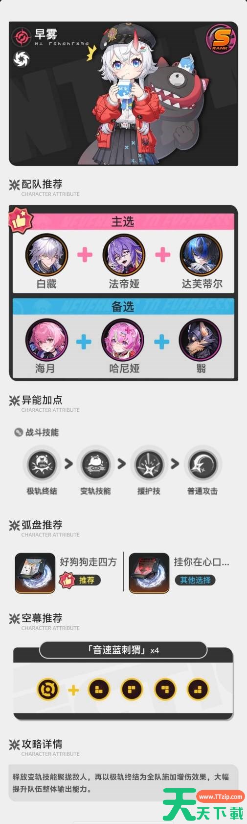 以上就是天天下载(ttzip.com)为大家带来的异环早雾怎么配队与出装推荐解答,大家都了解了吗?还想要了解更多的内容那就请继续关注天天下载(ttzip.com)吧。