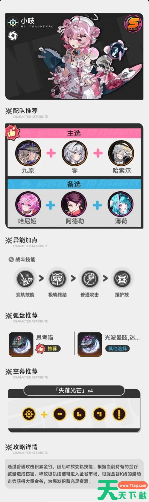 以上就是天天下载(ttzip.com)为大家带来的异环小吱怎么配队与出装推荐解答,大家都了解了吗?还想要了解更多的内容那就请继续关注天天下载(ttzip.com)吧。