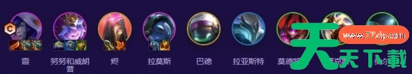 霞、努努、烬、拉莫斯、巴德、拉亚斯特、莫德凯撒、贾克斯、纳尔