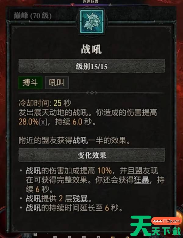 搏斗技能选择战吼。