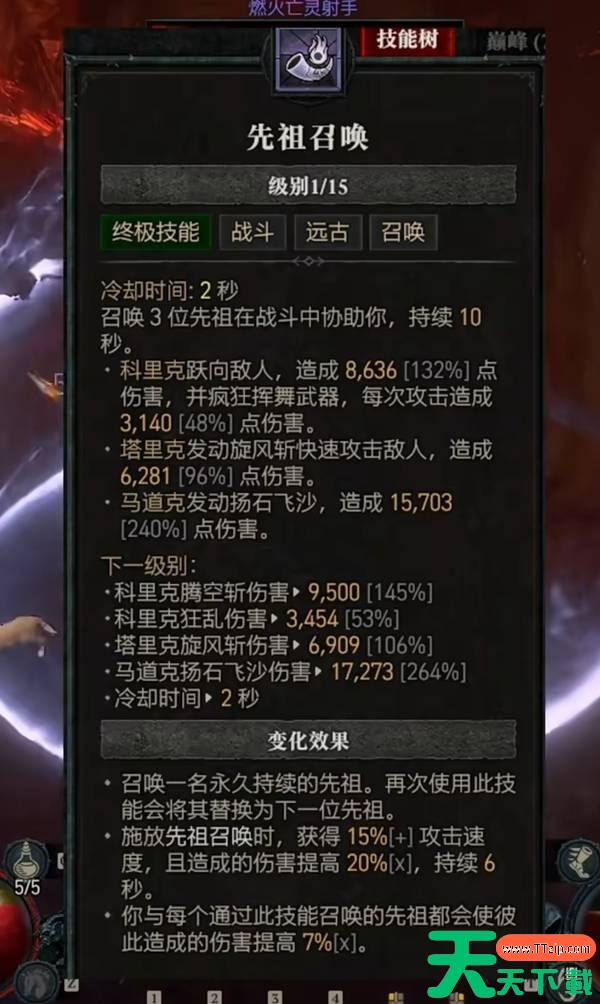 终极技能选择先祖召唤,可以加1级。