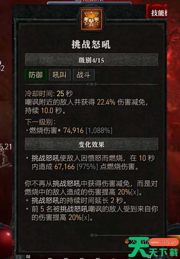 防御技能选择集结呐喊,这个技能是这套的核心,优先加满15级。