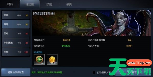 需要注意每20级副本就会开启下一个难度,比如你在第一天只升到了39级,那么在第二天可要先升到40级再去挑战,收益最大化!