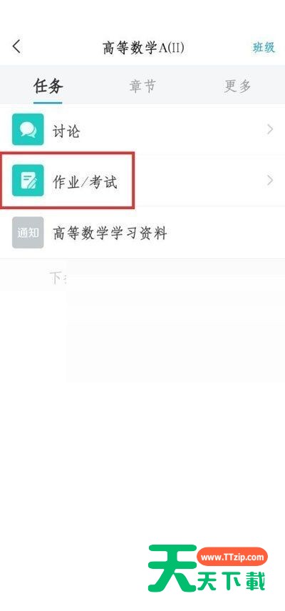 4、选择查看【作业/考试】一项;