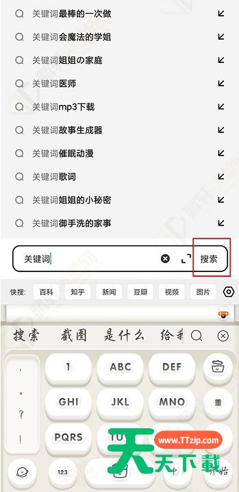 近日有一些小伙伴咨询天天下载夸克怎么用关键词搜索?下面就为大家带来了夸克用关键词搜索的方法,有需要的小伙伴可以来了解了解哦。 夸克怎么用关键词搜索?夸克用关键词搜索的方法 1、找到并点击进入夸克浏览器(如图所示)。 2、点击搜索框,并输入想要查找内容的关键词(如图所示)。 3、点击搜索即可(如图所示)。 以上就是给大家分享的夸克怎么用关键词搜索的全部内容,更多精彩内容尽在天天下载! @天天下载 除特别注明外,本站所有文章均为 天天下载 原创,转载请注明出处来自 https://www.ttzip.com/26057.html