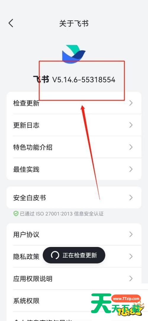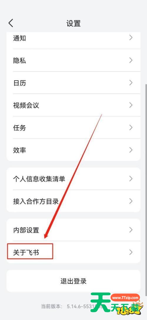 很多小伙伴在使用飞书的时候,想知道怎么查看版本号,下面天天下载就为大家分享飞书查看版本号教程,感兴趣的小伙伴不要错过哦! 飞书怎么查看版本号?飞书查看版本号教程 第一步:进入【飞书】APP首页,点击左下角【消息】,详见下图所示; 第二步:点击右上角头像,详见下图所示; 第三步:在弹出的页面点击【设置】,详见下图所示; 第四步:点击【 关于飞书】,这时就能看到版本号了,详见下图所示。 以上这篇文章就是飞书查看版本号教程,更多教程尽在天天下载。 @天天下载 除特别注明外,本站所有文章均为 天天下载 原创,转载请注明出处来自 https://www.ttzip.com/26142.html