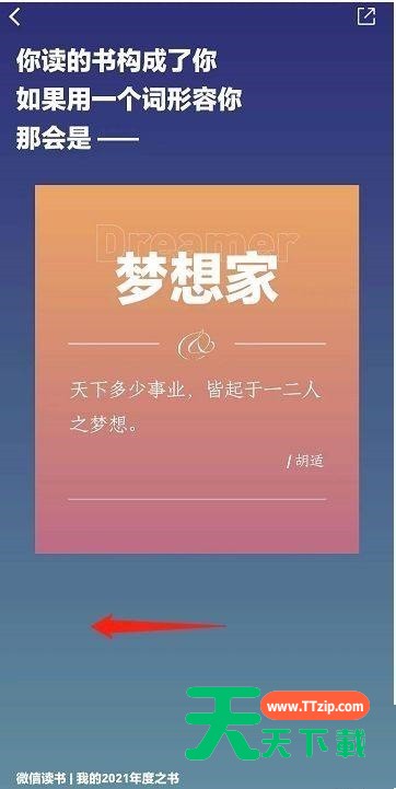 很多小伙伴在使用微信读书的时候,想知道年度报告怎么查看,下面天天下载就为大家分享微信读书年度报告查看方法,感兴趣的小伙伴不要错过哦! 微信读书年度报告怎么查看?微信读书年度报告查看方法 1、首先在微信读书页面,点击读书报告。 2、然后即可进入到报告页面,向左滑动页面。 3、最后即可将报告绘制为年度之书,查看微信读书报告即可。 希望此教程能帮到大家!更多教程请关注天天下载! @天天下载 除特别注明外,本站所有文章均为 天天下载 原创,转载请注明出处来自 https://www.ttzip.com/26346.html