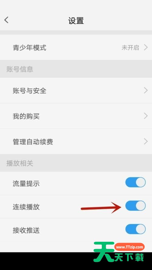 使用天翼超高清的时候,很多小伙伴不知道连续播放功能怎么开启,下面天天下载就给大家带来开启方法,有需要的小伙伴不要错过哦。 天翼超高清连续播放功能怎么开启?天翼超高清连续播放功能开启方法 1、首先点击手机桌面安装好的天翼超高清图标。 2、然后点击右下方我的。 3、点击设置选项。 4、最后点击连续播放后边的按钮。 谢谢大家阅读观看,希望本文能帮到大家! @天天下载 除特别注明外,本站所有文章均为 天天下载 原创,转载请注明出处来自 https://www.ttzip.com/26408.html