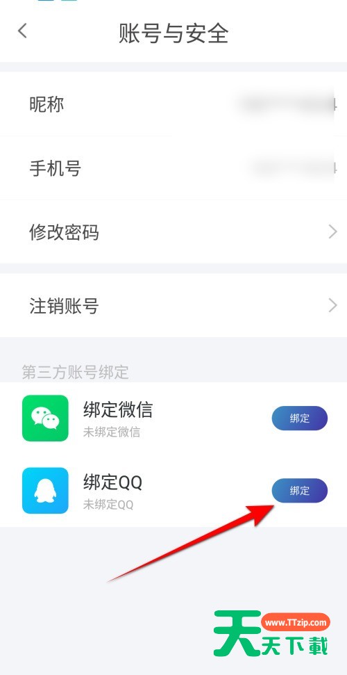 使用天翼超高清的时候,很多小伙伴不知道怎么绑定QQ,下面天天下载就给大家带来天翼超高清绑定QQ教程,有需要的小伙伴不要错过哦。 天翼超高清怎么绑定QQ?天翼超高清绑定QQ教程 1、首先打开天翼超高清,点击账户与安全。 2、然后点击绑定QQ右边【绑定】。 3、最后点击【同意】即可完成绑定QQ。 以上这篇文章就是天翼超高清绑定QQ教程,更多教程尽在天天下载。 @天天下载 除特别注明外,本站所有文章均为 天天下载 原创,转载请注明出处来自 https://www.ttzip.com/26422.html