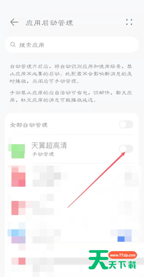 今天天天下载为大家带来了天翼超高清设置开启自启动教程,想知道怎么做的小伙伴来看看接下来的这篇文章吧,相信一定会帮到你们的。 天翼超高清如何设置开启自启动?天翼超高清设置开启自启动教程 1、首先在手机上打开设置。 2、然后点击【应用和服务】。 3、点击【应用启动管理】。 4、接着点击【天翼超高清】,右边选择按钮。 5、最后手动管理,点击允许自启动即可。 谢谢大家的观看,更多手机教程请关注天天下载! @天天下载 除特别注明外,本站所有文章均为 天天下载 原创,转载请注明出处来自 https://www.ttzip.com/26439.html