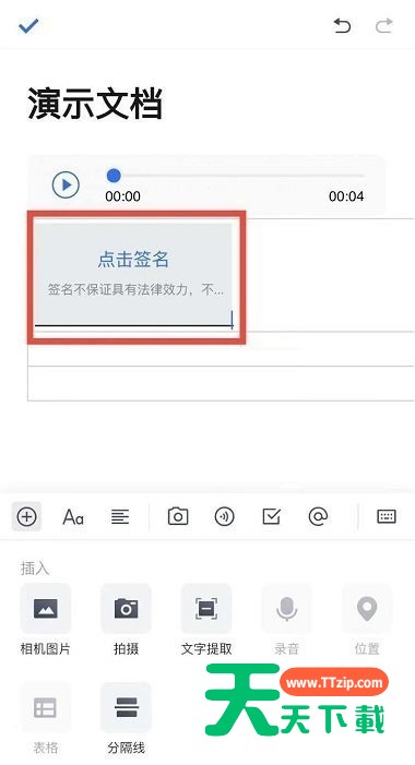 有些文件内容可能是需要进行签名的,这个时候可以插入电子签名,下面天天下载就为大家带来了方法,有需要的小伙伴可以跟天天下载一起来看看。