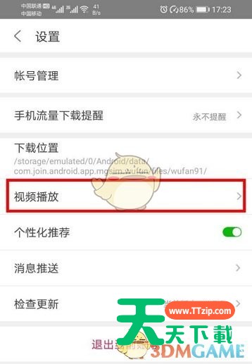 很多小伙伴在使用悟饭游戏厅的时候,想知道如何关闭视频自动播放,下面天天下载就为大家分享教程,感兴趣的小伙伴不要错过哦! 悟饭游戏厅如何关闭视频自动播放?悟饭游戏厅关闭视频自动播放教程 1、打开“悟饭游戏厅app”,点击“我的”(如图所示)。 2、然后点击“设置”(如图所示)。 3、接着再点击“视频播放”(如图所示)。 4、最后选择“不自动播放视频”就可以了(如图所示)。 谢谢大家的观看,更多手机教程请关注天天下载! @天天下载 除特别注明外,本站所有文章均为 天天下载 原创,转载请注明出处来自 https://www.ttzip.com/26555.html