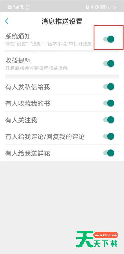 有的小伙伴会问天天下载话本小说如何关闭系统通知,下面天天下载就为大家详细的介绍一下,想知道的话就来看看吧,相信一定会帮到你们的。 话本小说如何关闭系统通知?话本小说关闭系统通知教程 第一步:进入【话本小说】APP首页,点击右下角【我的】,详见下图所示; 第二步:点击【设置】,详见下图所示; 第三步:点击【消息推送】,详见下图所示; 第四步:点击【系统通知】后的绿色按钮,待显示灰色即可关闭,详见下图所示。 谢谢大家的观看,更多手机教程请关注天天下载! @天天下载 除特别注明外,本站所有文章均为 天天下载 原创,转载请注明出处来自 https://www.ttzip.com/26587.html